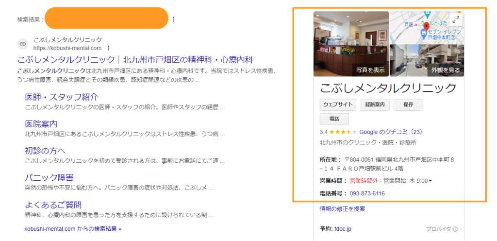 検索結果の右側に、ビジネスプロフィールが表示されます。